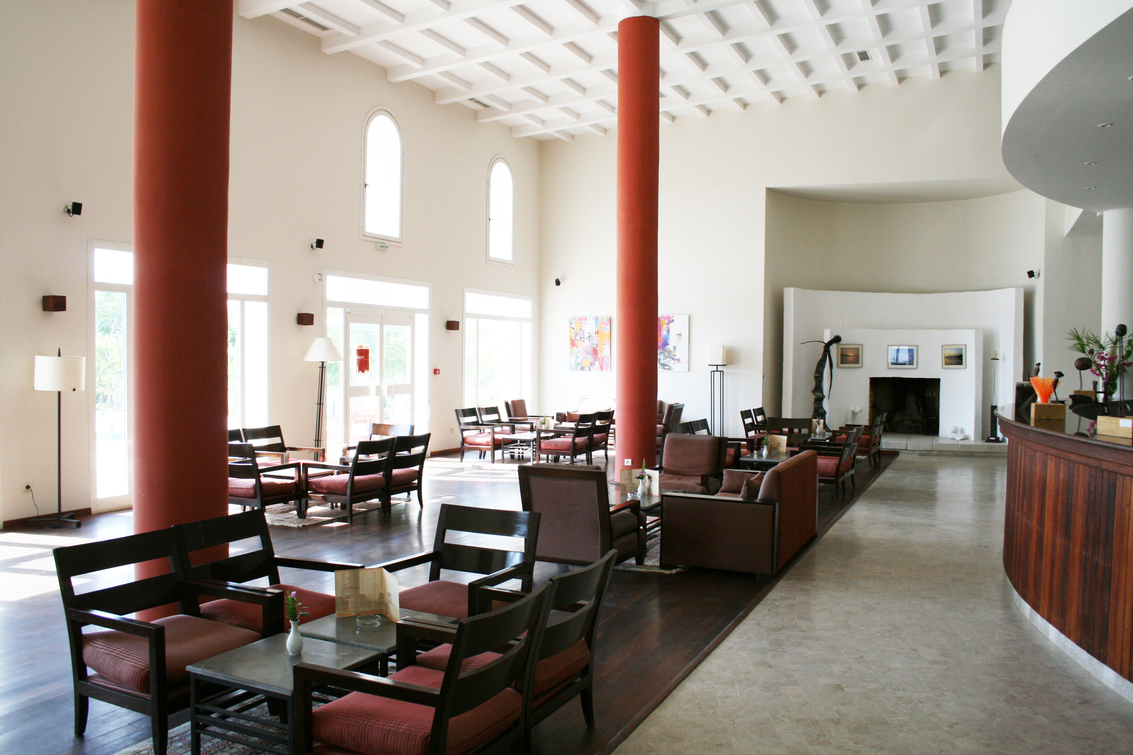 Sérénité et douceur au bar Le Florian, avec son parquet en bois, ses meubles aux couleurs brunes et chaudes et sa cheminée moderne et chaleureuse.